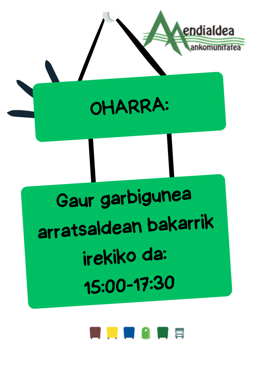 Azaroak 25, garbigunea arratsaldez bakarrik irekiko da